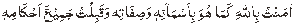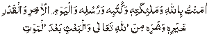 Aamantu Billahe kama huwa bi-ismaaihii wa sifatihi wa Qabiltu jamiaa ahkamihii. I believe in Allah as He is with His Names and Attributes and I accept all His commandments. Comprehensive Belief: It means admission of belief in detailed words, i.e., admission of belief in Allah, His angels, His messengers, His scriptures, Last Day and Destiny. Prescribed words for this are: