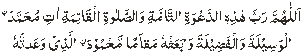 Allahumama rabba hadhi hid dawa tit tammti was ala til qaimati ati Muhammada nil waseelata walfadeelata wab ath-hu maqamam mahmuda nil ladhi wa ad tahu. O Allah the Lord of this complete call and the prayer of always! By the blessings of it, give Muhammad waseelah (highest place in Paradise) and merit and raise him to the praised place of which You have promised. Iqaamah The Iqaamah is call to prayer which is given to allert the believers in the mosque that the prayer is about to be performed, so they should line up in rows behind the Imam (prayer leader). Upon its announcement, the Imam commences with the prescribed prayer. The words of Iqaamah are as follows: