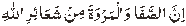 (Inn-as-Safa wal-Marwata min Sha`airillahi) “Indeed Safa and Marwah are among the signs of Allah.” Then said: “I begin my Sai from Safa as Allah has mentioned it before Marwah”. Then he climbed Safa till he could clearly see the House of Allah: He then stood facing the Qiblah, and proclaiming the Oneness and Greatness of Allah, recited: