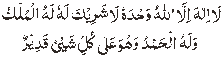 La-Ilaha ill-Allahu wahdahu la sharika lahu la-hul mulku wa la hul hamdu wa huwa ala Kulli shai’in Qadir There is no God but Allah Who is one. He has no partner. To Him belongs all sovereignty and all praise. And He has full power over everything. After this recite Darood on the Prophet and make supplications to Allah whatever you want. Them come down from Safa and start towards Marwah reciting the following Dua”: